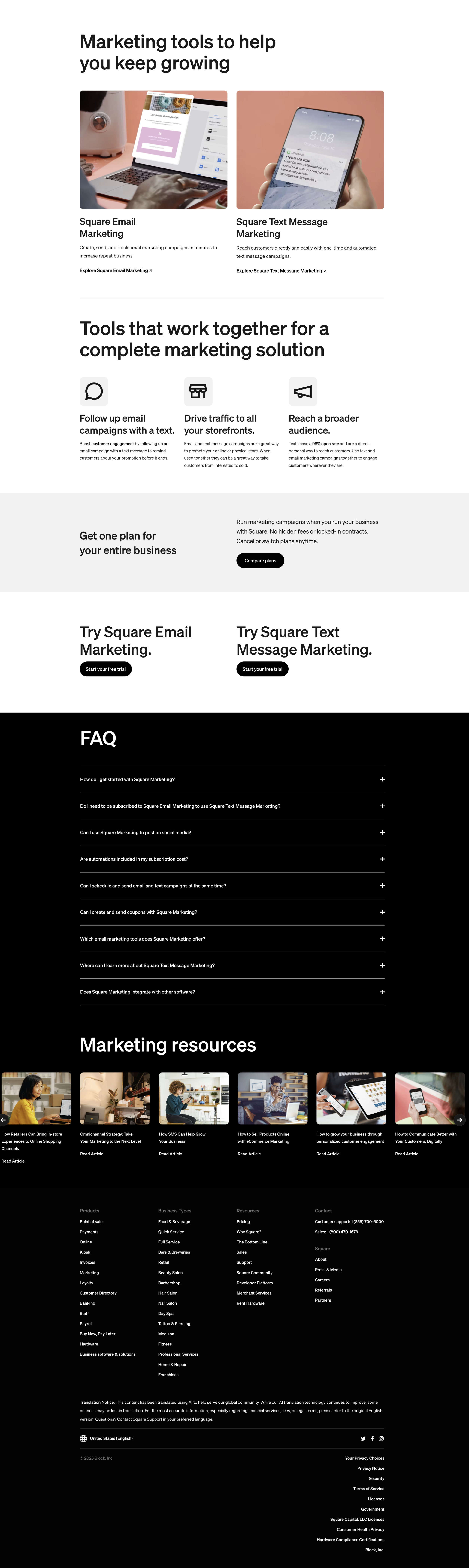 Square Marketing Page