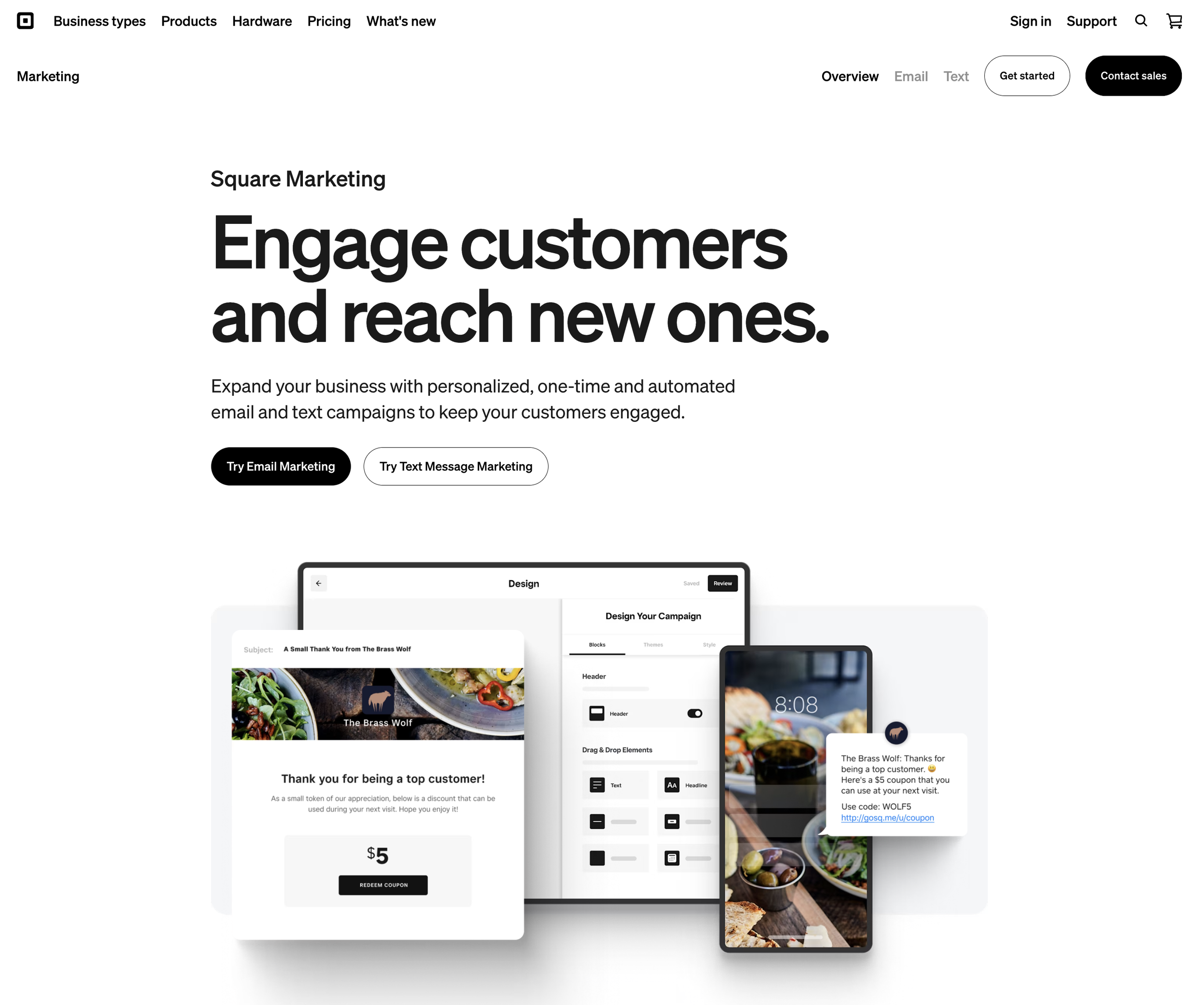 I led the redesign of Square’s Marketing Router Page to improve clarity, discoverability, and conversion across Email and Text Message Marketing. The new modular top-level page created a unified narrative, simplified navigation, and strengthened connections between the two products.